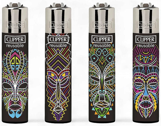 4 x Mandala African Masks Clipper Lighters Funny Cool Clippers Lighter Gas 420