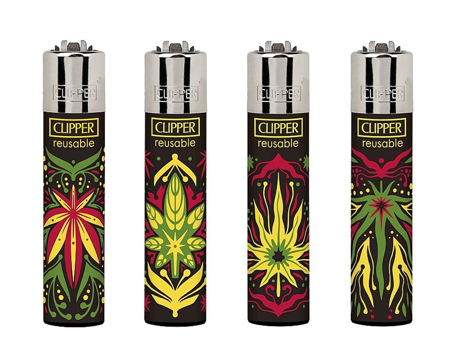 The Set includes 4 Dark Weed Themed CLIPPER® lighters.